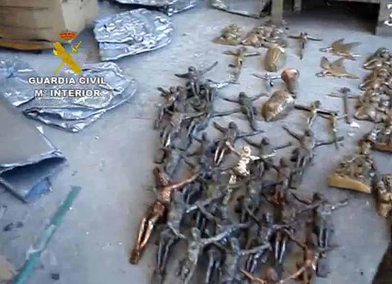 La casualidad ha querido que agentes del Seprona de la Guardia Civil en una de sus inspecciones rutinarias a una chatarrería de Leganés descubrieran unos 200 kilos de crucifijos, vírgenes, féretros de zinc y todo tipo de ornamentación fúnebre.