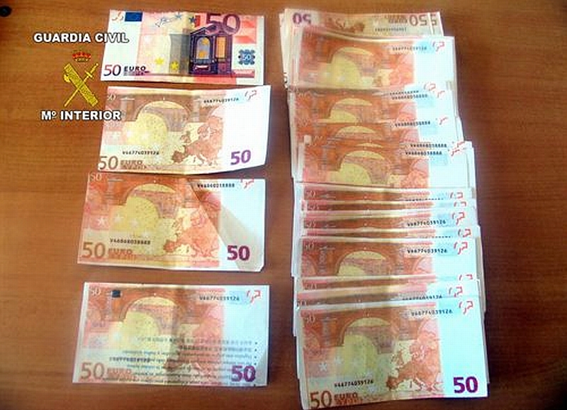 La Guardia Civil ha procedido a la detención de una persona, como presunto autor de un delito de falsificación de moneda, tras ser sorprendido cuando circulaba con un vehículo en el que fueron hallados un total de 4.100 euros en billetes falsificados.