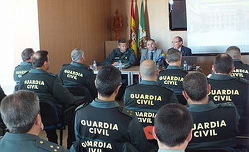 Oficiales de la Comandancia de la Guardia Civil de toda la provincia se han dado cita hoy en el salón de actos de la Oficina de Turismo de la Plaza de la Constitución, lugar elegido por la Dirección General de la Guardia Civil de Granada para la celebración de una de sus reuniones periódicas a fin de analizar procedimientos, establecer coordinación y ver en qué cuestiones se puede mejorar la prestación del servicio. Así lo ha explicado José Santiago Martín Gómez, Teniente Coronel Jefe Interino de la Comandancia de Granada en la presentación de esta reunión de trabajo en la que también han estado presentes el subdelegado del Gobierno en Granada, Santiago Pérez López, y el alcalde de Guadix, José Antonio González Alcalá.