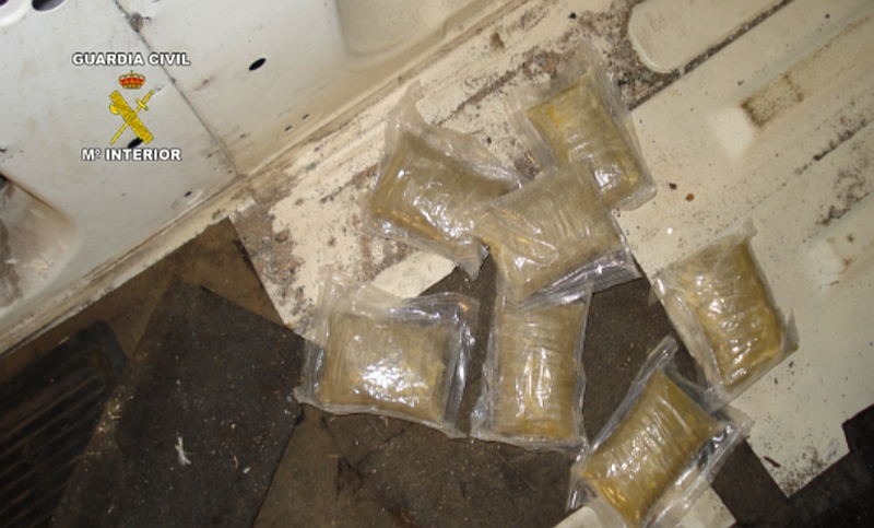 Los agentes detuvieron en la localidad de La Junquera (Gerona) al conductor de un vehículo que transportaba 30 kilogramos de hachís ocultos en un doble fondo, cuando se disponía a abandonar el territorio nacional con destino a territorio comunitario. Asimismo, se detuvo a los tres ocupantes de otro vehículo que actuaba como “lanzadera”.