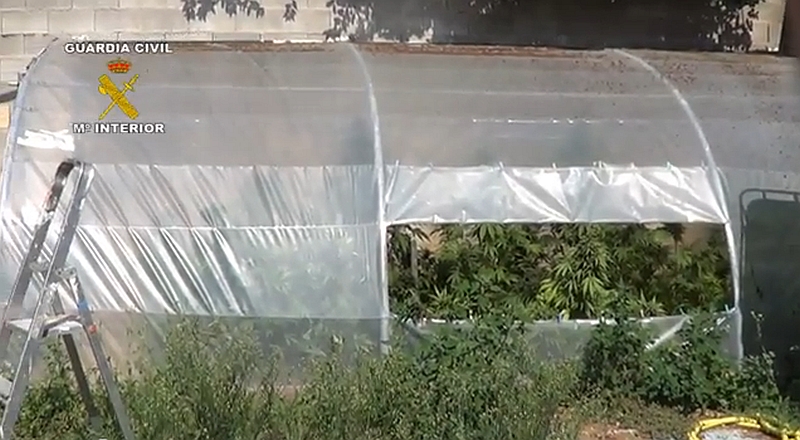 El pasado 11 de julio, los efectivos de la Guardia Civil realizaron un registro en la finca, en la que encontraron 416 plantas de de cánnabis sátiva (marihuana) en avanzado estado de crecimiento y dos recintos utilizados como secaderos. Además, en el interior de una de las viviendas de la finca se intervineron 334 gramos de cogollos de marihuana, una pistola y munición y 1.175 euros, mientras que en la otra se hallaron elementos para la producción de la droga y 12 navajas, además de otros 200 euros.