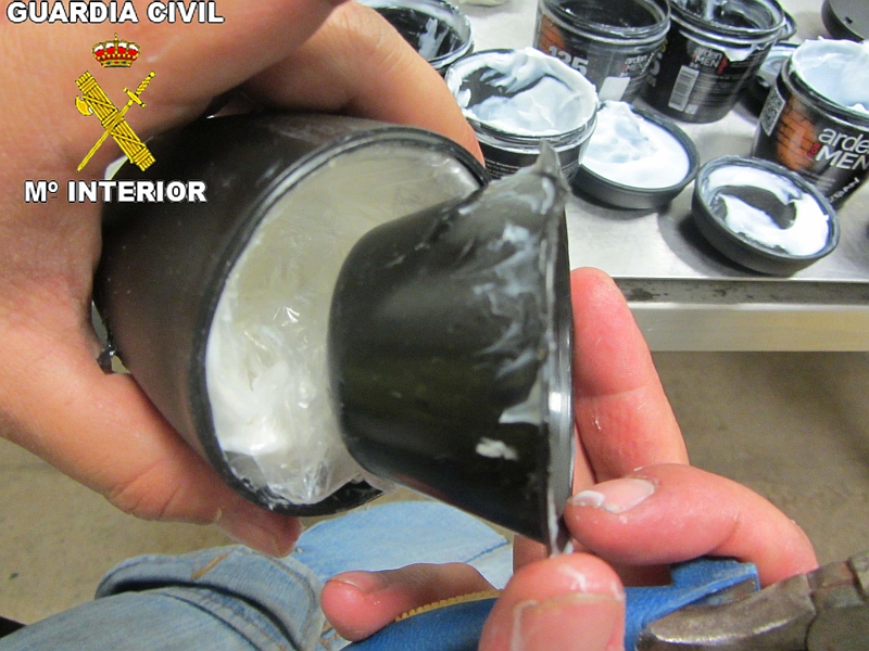 La última intervención se realizaba por la tarde del mismo día, en esta ocasión resultó detenido un ciudadano colombiano, a quien la Guardia Civil localizó en su equipaje catorce botes de crema cosmética para hombre, a los que se les había practicado un doble fondo y que contenían 1.050 gramos de cocaína.