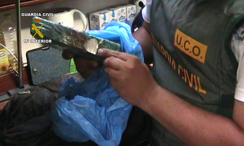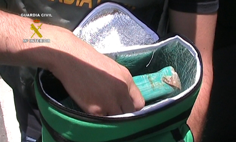 Entre los objetos que portaban los miembros de la embarcación los investigadores comprueban que llevan una bolsa nevera, determinando posteriormente tras su detención que en la misma trasladaban el estupefaciente que tenían que entregar a la citada pareja.