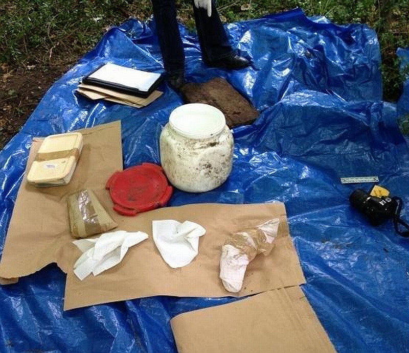 En su interior y dentro de dos bidones de plástico herméticamente cerrados se ha encontrado el siguiente material: