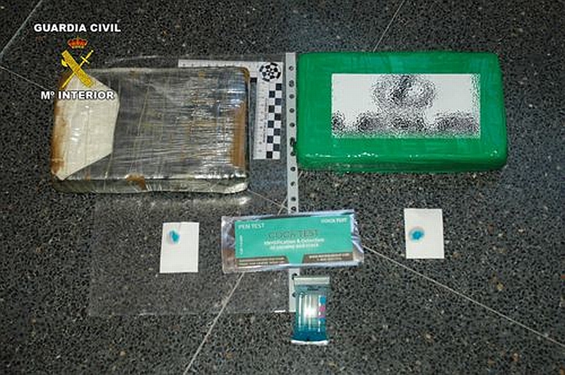 Los guardias civiles de la Usecic de la Comandancia de Granada interceptaron un turismo Citroën C2 que circulaba en dirección a Murcia y descubrieron al registrar el vehículo que en el maletero el conductor y único ocupante transportaba una caja de cartón que contenía camisetas con propaganda, y entre las camisetas dos paquetes herméticos que contenían, como se demostró después al realizarles un narcotest, cocaína de gran pureza.