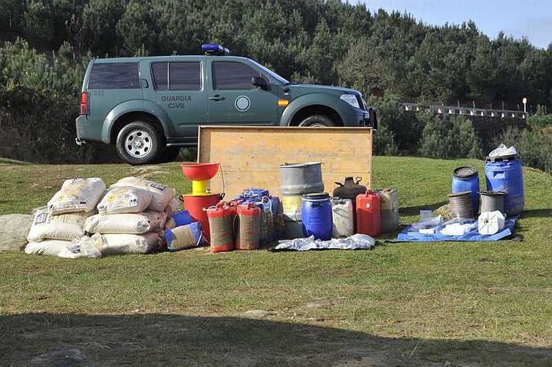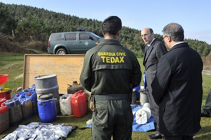 Un portavoz de la Guardia Civil ha explicado las actuaciones llevadas a cabo para el almacenamiento y destrucción de los más de 1369 kilos de material para fabricar explosivos, 17 kilos de pentrita, 215 metros de cordón detonante y 43 kilos de aluminio en polvo intervenidos.