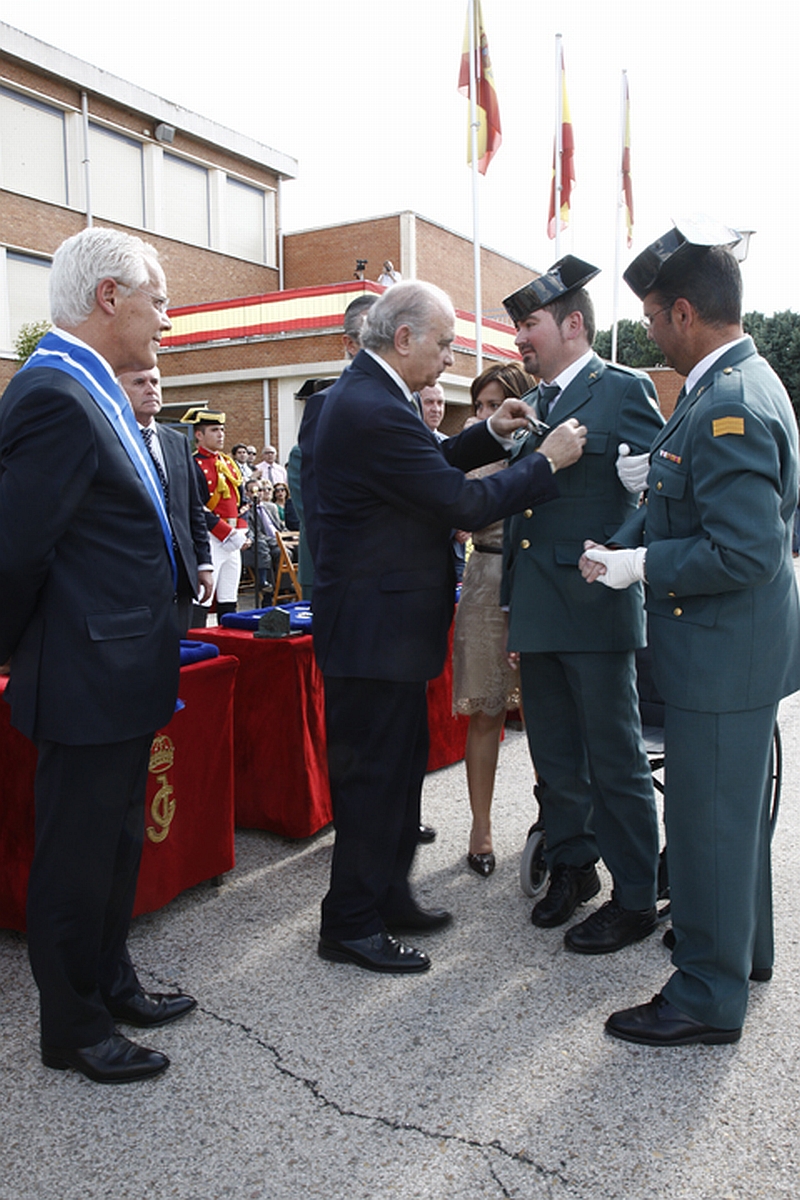 En esta conmemoración, el ministro del Interior, Jorge Fernández Díaz, ha condecorado de manera muy especial con la Cruz de Plata al Guardia Civil, Fernando Mogena Jiménez, destinado en el Área de Investigación del Puesto Principal de la Guardia Civil de Valdemoro (Madrid).