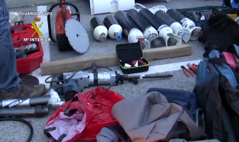 En la furgoneta, los agentes encontraron gran cantidad de útiles empleados en los asaltos (lanza térmica, radiales, inhibidores de frecuencia, transmisores, guantes, linternas, etc.). Además, encontraron siete botellas de gas acetileno, que hubiera supuesto un grave peligro para la integridad de las personas en caso de que se hubiera producido alguna explosión fortuita del gas.