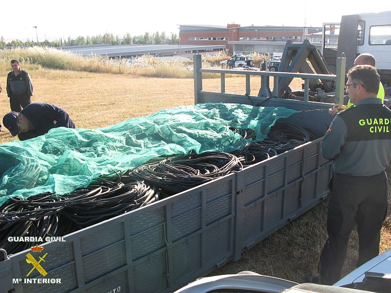 Los hechos tuvieron lugar cuando la Guardia Civil interceptó un vehículo ocupado por tres personas en un acceso de la carretera A-58 (Cáceres-Trujillo). Una vez que los agentes identificaron a los ocupantes procedieron a inspeccionar el vehículo hallando en su interior numerosos rollos de cable y dos bobinas precintadas de trescientos metros cada una.