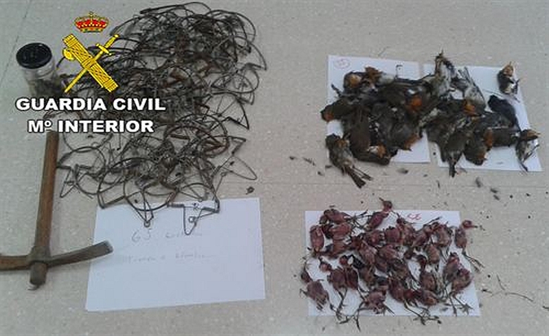 En concreto, en dicha mochila, intervenida por la Benemérita, portaba un 'escardillo', un bote de cristal con hormigas de alas, 65 trampas y 61 aves insectívoras, entre las que se encontraban 26 petirrojos, nueve currucas y 26 aves aún sin identificar al encontrarse sin plumaje, según ha informado el Instituto Armado, que ha formulado por estos hechos una denuncia administrativa que remitirá a la Delegación Provincial de la Consejería de Medio Ambiente por una supuesta infracción en materia de caza.