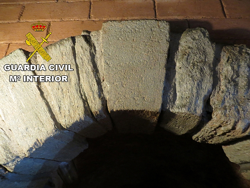 Los agentes observaron como el arco románico había sido expoliado mediante el uso de algún tipo de herramienta, posiblemente una barra de uña, desmontándolo dovela a dovela para poder reubicarlo con su forma original.