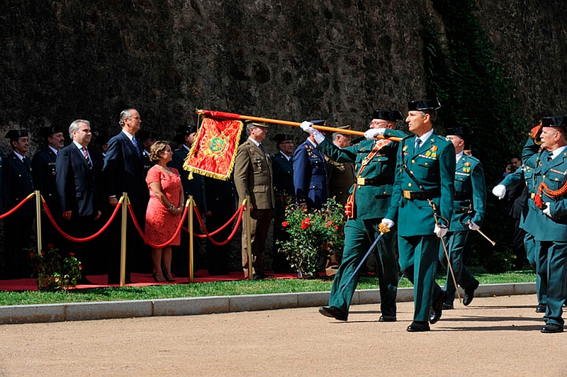 El Director General de la Guardia Civil, Arsenio Fernández e Mesa y el General Jefe de la Zona de Extremadura, José Hurtado, han presidido en el Parque de los Sitios el acto de izado de la Bandera Nacional, que se ha celebrado por primera vez en Badajoz.