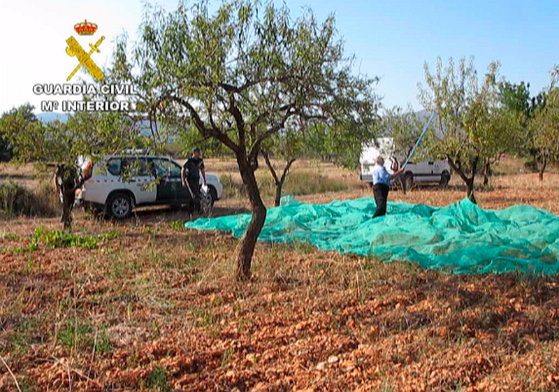 El total de almendra sustraída en la zona ascendía a unos 9.000 kilogramos cuyo valor en el mercado se estima cercano a los 12.000 euros.