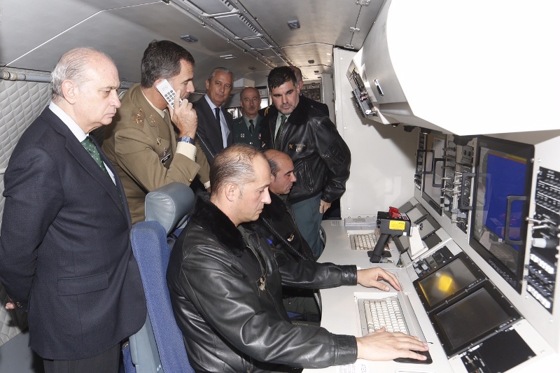 Don Felipe también ha embarcado a bordo de un avión CN-235, donde se le han mostrado los sistemas de los que dispone para prestar su labor cotidiana. Posteriormente, ha asistido a un simulacro de misión, enlazando con un avión del Cuerpo desplegado en Sigonella (Italia) en la "operación Hermes" de FRONTEX y con el Centro de Coordinación de Vigilancia Marítima de la Guardia Civil (CECORVIGMAR), situado en la Dirección General del Cuerpo en Madrid.