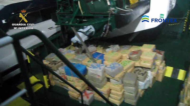 La actuación se ha llevado a cabo cuando los agentes del buque Río Miño que estaban prestando servicio en el mar territorial de Alborán, recibieron un aviso del Centro de Coordinación Internacional (ICC), participando la visualización por parte de un avión de reconocimiento italiano, integrado en el dispositivo de vigilancia del Estrecho de una embarcación que podría estar transportando droga.