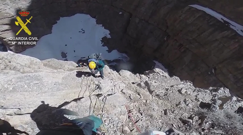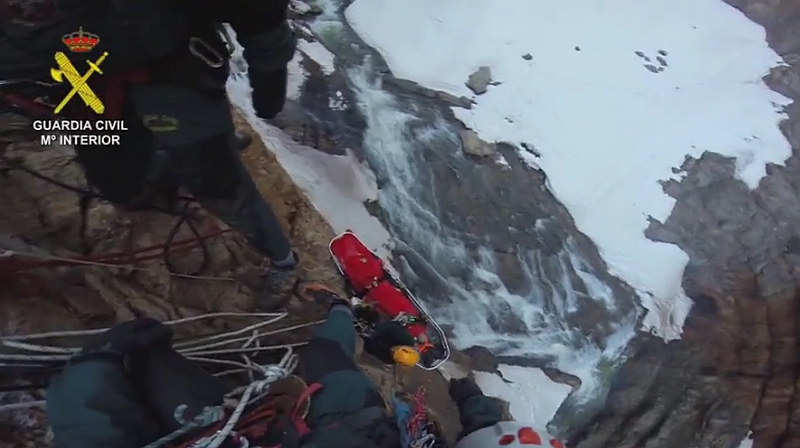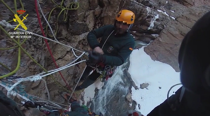 Rescate realizado por la Unidad Especial de Montaña, perteneciente al Servicio de Montaña de la Guardia Civil. Se trata de una unidad superespecializada en los rescates más complicados en alta montaña, escalada y barrancos. Está formada por 1 Brigada y 6 Guardias Civiles que a su vez son instructores de montaña. Tienen su base operativa en el Servicio de Montaña de la Guardia Civil en Jaca (Huesca).