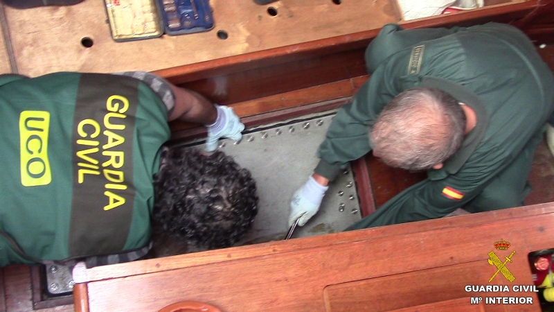 En el interior de la mencionada embarcación, oculto en un doble fondo, debajo de un depósito de combustible, al que se llegaba a través del propio depósito, siendo necesario para acceder al doble fondo el empleo de diversas herramientas pesadas y de corte, y de donde finalmente fueron extraídos un total de 725 paquetes de cocaína que alcanzan un peso aproximado de 725 kilogramos, durando el registro cerca de diez horas continuadas.