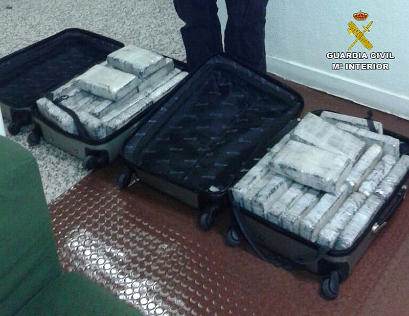 La Guardia Civil en el marco de la operación GLOBAL ha detenido a 5 personas y ha imputado a otra pertenecientes a una organización de narcotraficantes que pretendía introducir en España una partida de 46,960 kilos de cocaína que habían llegado en dos maletas al aeropuerto de Lisboa, procedente de Caracas (Venezuela).