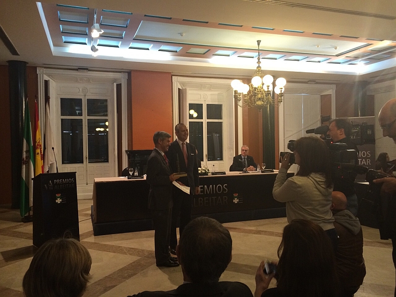 El Presidente del Consejo Andaluz de Colegios Oficiales de Veterinarios, Fidel Astudillo Navarro, ha hecho entrega del premio Albéitar 2014 en su modalidad de Institucional por su labor en la defensa de los animales