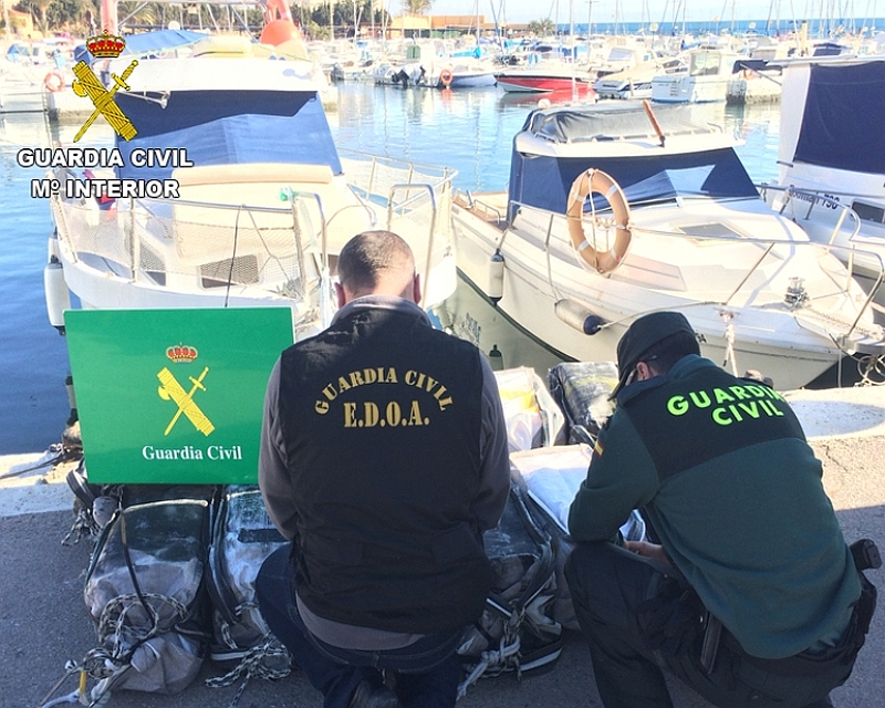 La operación se desarrollo cuando la Guardia Civil pudo observar como una embarcación estaba realizando extraños movimientos frente al Puerto de Torre de la Horadada (Alicante), los que despertó las sospechas de los agentes.