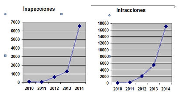 El Director General de la Guardia Civil ha precisado que se ha pasado de realizar 61 inspecciones en el año 2011, a 6.548 en el año 2014, multiplicando por cien el número de actividades inspectoras que inciden directamente en la seguridad ciudadana. Así mismo, se ha pasado de formular 308 denuncias por infracciones administrativas en el año 2011, a 17.070 en el año 2014, lo que da una idea del compromiso adquirido por esta Institución en los últimos años.