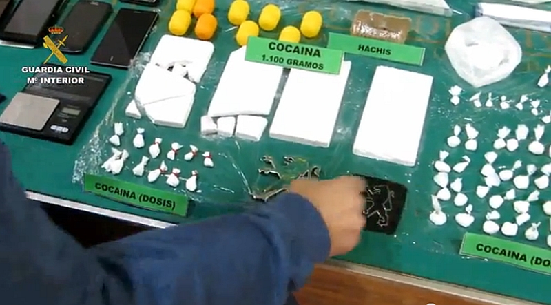 Entre las sustancias intervenidas, la Guardia Civil ha incautado 1.100 gramos de cocaína, 100 gramos de hachís, seis básculas de precisión, tres vehículos, 18 teléfonos móviles, "útiles y enseres" para tratar y adulterar la droga y 11.000 euros procedentes de la venta de droga. Según Pozuelo, "la droga tenía un valor estimado de entre 65.000 o 70.000 euros".