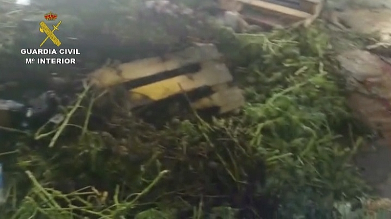 En el momento del rescate de las cuatro personas que se encontraban en el interior de la nave, los Guardias Civiles pudieron comprobar que a pesar de no haber llamas, había una enorme humareda en el interior descubriendo que el foco del mismo era una plantación de marihuana a la que habían prendido fuego.