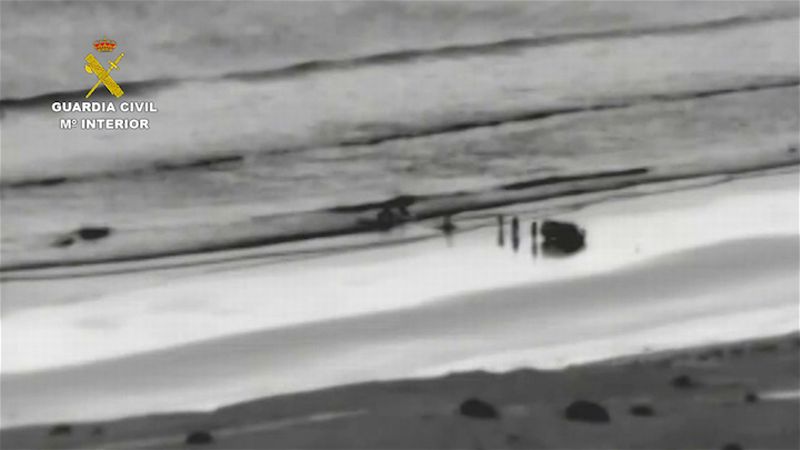 SIVE observan como la embarcación toca tierra en la playa y un grupo de