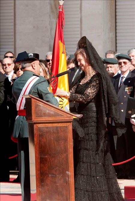 SM la Reina doña Sofía ha hecho entrega en el día de hoy de una Bandera Nacional a la 7ª Zona de la Guardia Civil en Cataluña, en un acto que ha tenido lugar en el acuartelamiento de la Guardia Civil en San Adreu de la Barca (Barcelona).