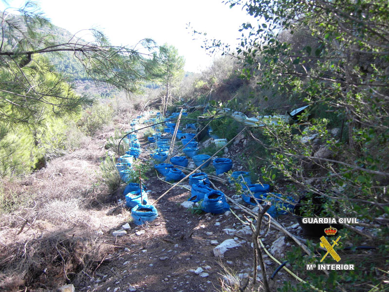 La operación se inició a primeros de este mes cuando la Guardia Civil tuvo noticias de que por una zona montañosa y de difícil acceso existente entre los términos municipales de Benichembla y Castell de Castells, podría haber una plantación de marihuana, por lo que se estableció un dispositivo tendente a su localización.